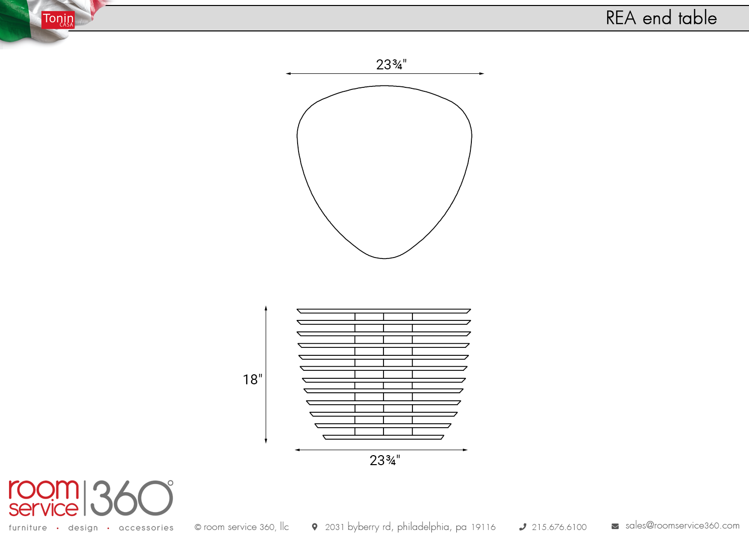 - 23¾"W × 23¾"D × 18"H