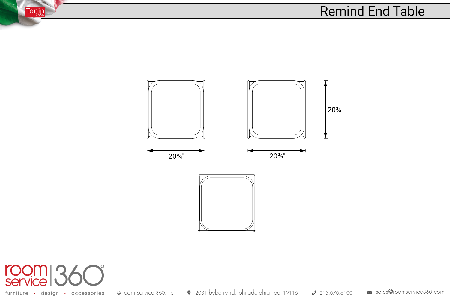 - 20¾"W × 20¾"D × 20¾"H