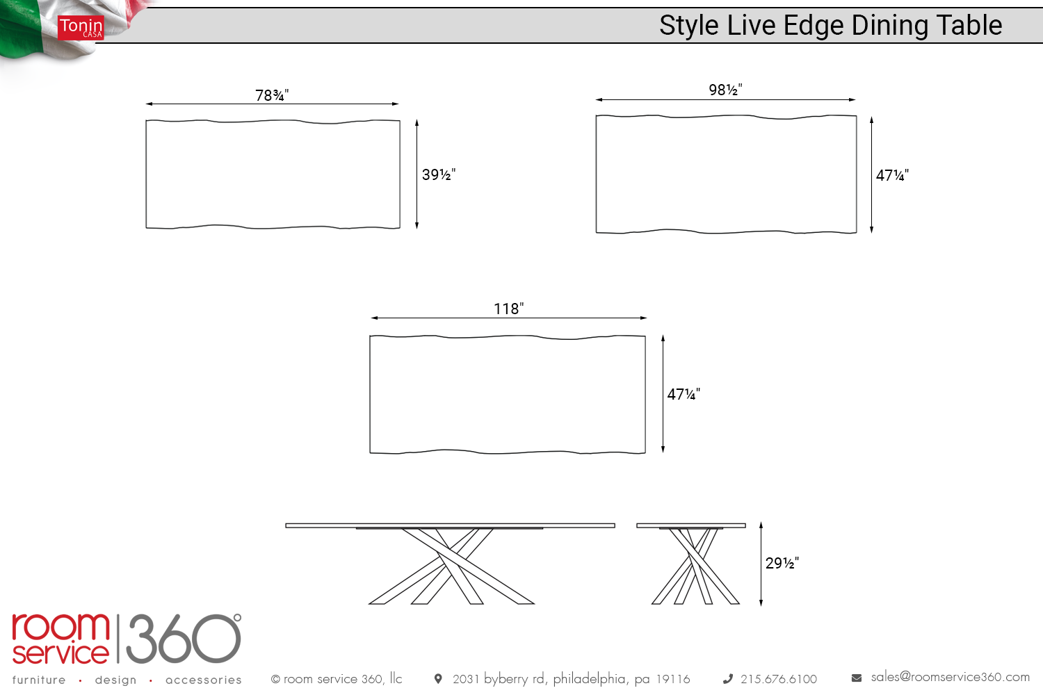 - 118"W × 47¼"D × 29½"H