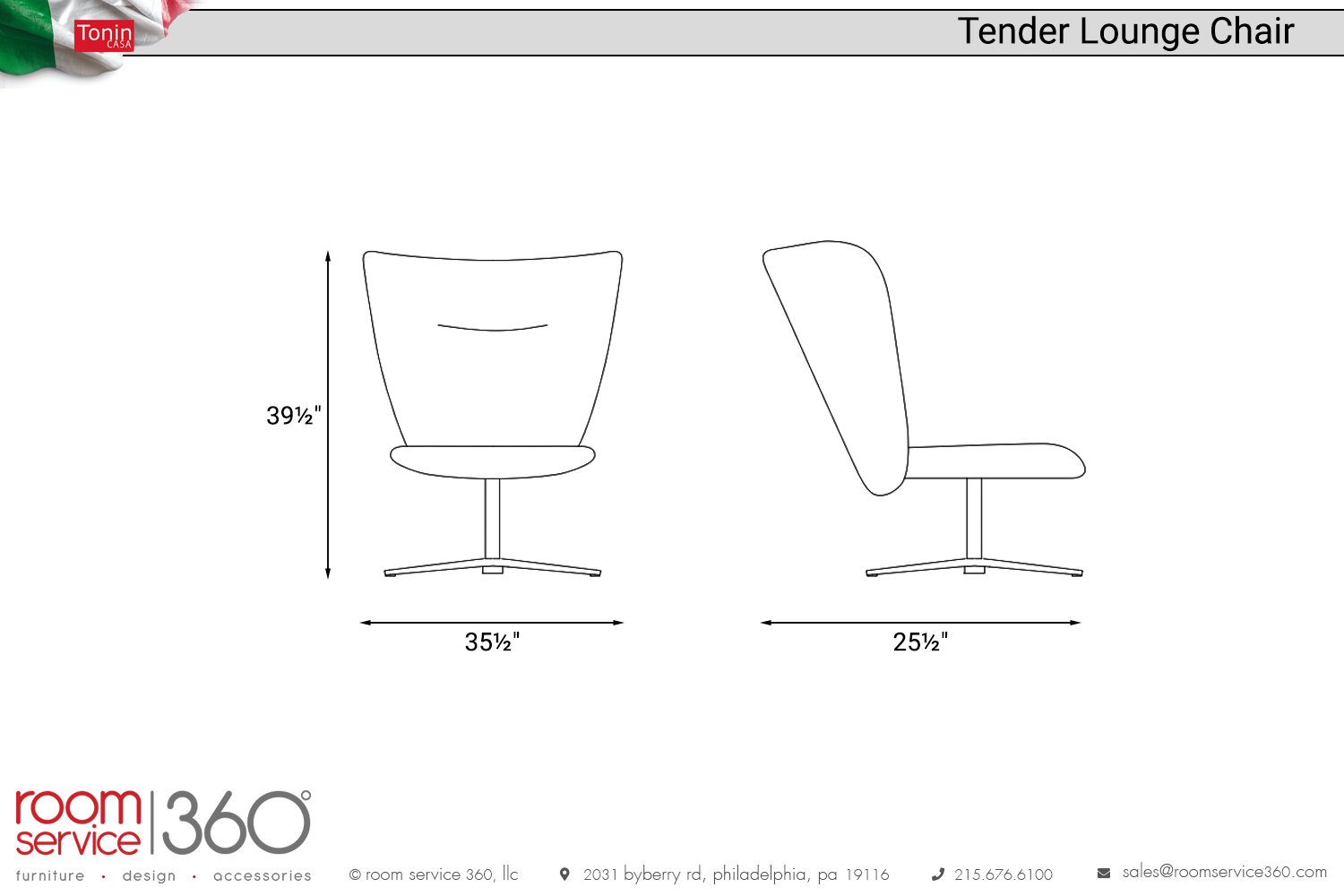 Create a personalized oasis in the living room when you customize the upholstery of this chair. It is available in various leathers, eco-leathers, and velvet options in diverse colors. The base is black metal. Manufactured in Italy in Tonin Casa, the Tender lounge chair is part of the Tender collection of chairs.
