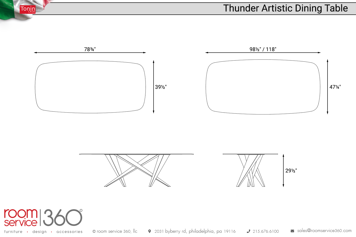 - 78¾"W × 39½"D × 29½"H