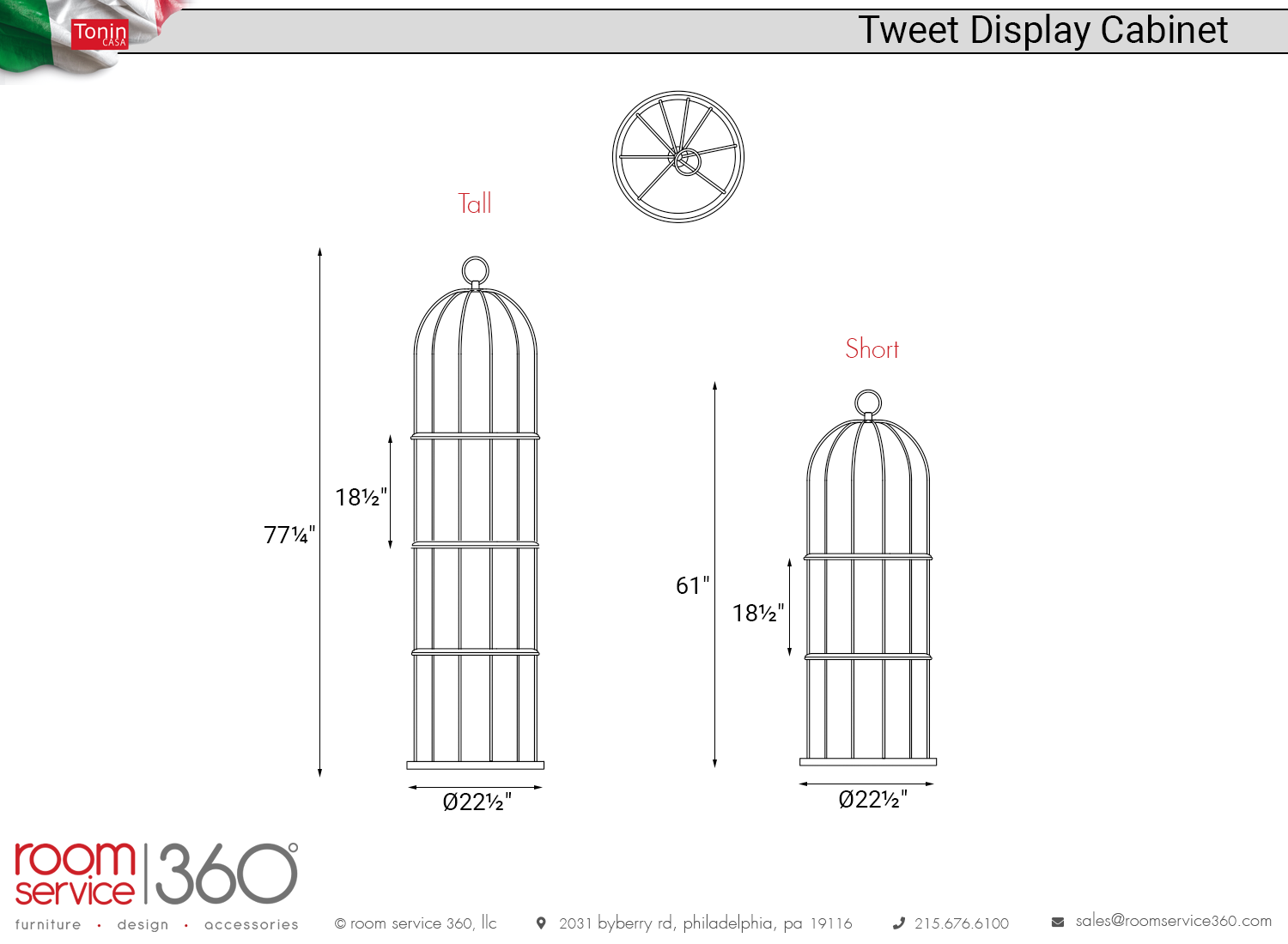 - Ø22½" × 77¼" H