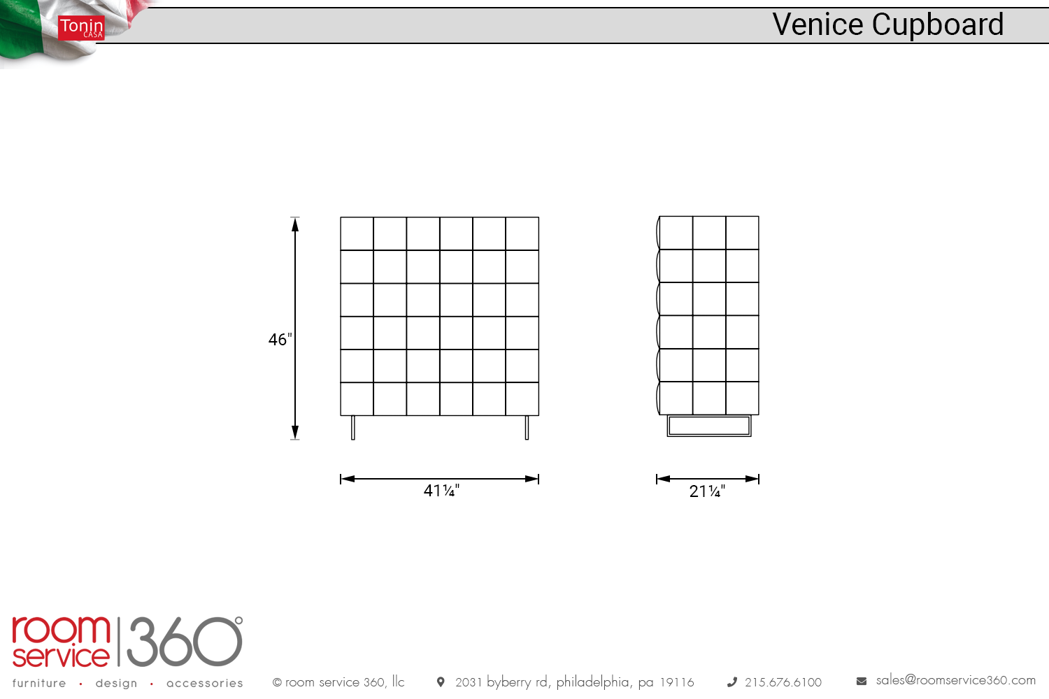 - 41¼"W × 21¼"D × 46"H
