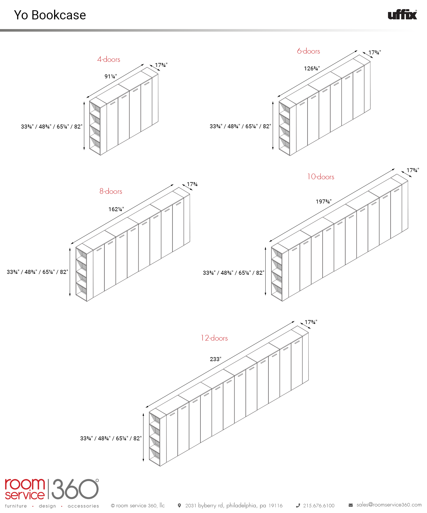 10-Door:- 197¾"W × 17¾"D × 33¾" / 48¾" / 65¼" / 82"H