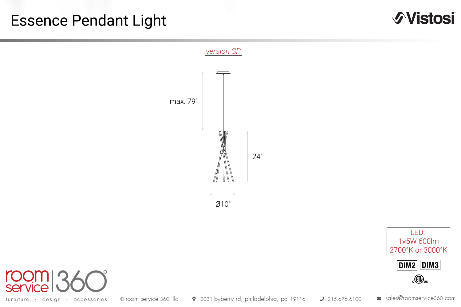 - LED: 1×5W 600lm (2700°K or 3000°K)
