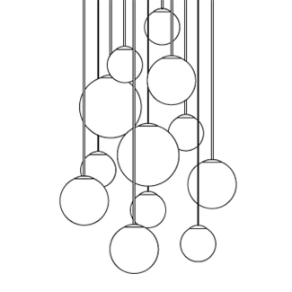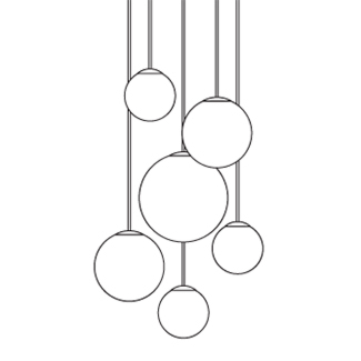 The Puppet Suspension Light makes a bold statement in any modern interior, showcasing hand-blown glass diffusers with distinctive, irregular striped patterns. Available in multiple sizes and suspended at varying cable lengths, the design offers flexibility for creating refined, layered arrangements. Each composition features spheres in three different sizes, enhancing its sculptural appeal. Select from four sophisticated glass finishes: shaded white, transparent crystal, transparent smoke, or transparent amber. The metal frame comes in your choice of polished chrome with a grey fabric cable or matte black with a black fabric cable.